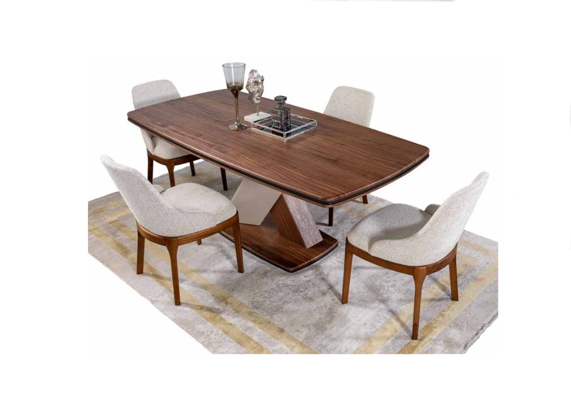 Braun-Gro Esszëmmer Garnitur Luxus Iessdësch 4x Still Iessgrupp Set