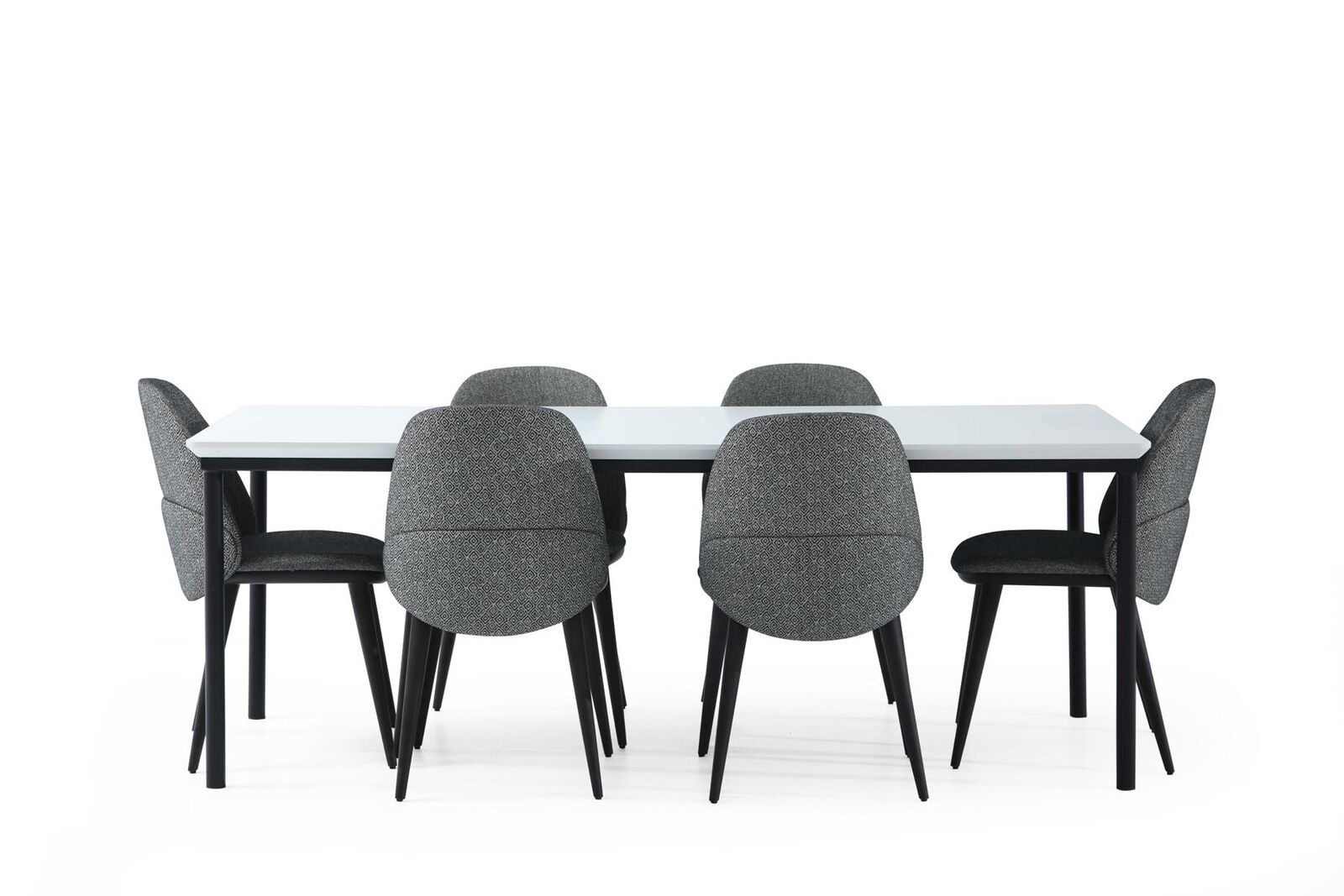 Iesszëmmer Grupp Iessdësch Still Dësch Holz Set 7 Stécker Gro Modern Set