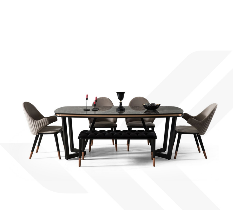 Dësen aussergewéinlechen Iesszëmmer Set erméiglecht et Iech, eng gemittlech an elegant Atmosphär ze schafen, an där jiddereen sech wëll opgehalen. Et ass ideal fir doriwwer eraus Erausfuerderungen, vum Alldag bis zu speziellen Occasiounen, well den Dësch genuch Plaz bitt ouni dat Gefill vu Verdrängung ze vermëttelen. D'Stiller, mat hirem ergonomesche Design, bidden onbeschwéiertes Sëtzen och iwwer längeren Zäitperioden. Andeems en dësen Iesszëmmer Set wielt, investéiert een an en héichwäertegt Miwwelstéck, dat net nëmmen funktionell ass, mä och ästhetesch Gefalen an all Iessraum bitt.