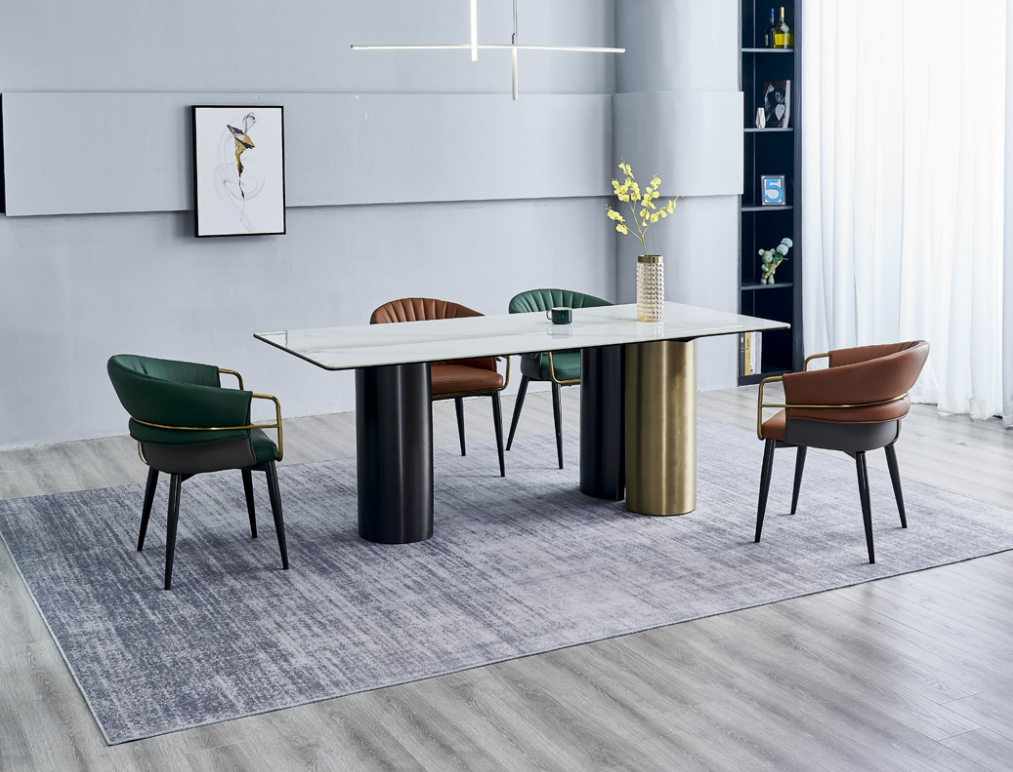 Dës modern ausgeriichte Garni seet sech ideal net just fir deeglech Iessen awer och fir elegant Dinner-Partyen. Mat senger unzéiender Faarfpalette, déi d'Ästhetik vun Ärem Iesszëmmer verbessere kann, ass dëse Set perfekt fir déi, déi no engem stilvollen an dauerhaftem Moossutzerfarung sichen. D'Méiglechkeet, déi verfügbaren Dimensiounen no Besoin unzepassen, bitt Flexibilitéit jee nodeems wéi vill Plaz verfëgbar ass. Béid den Dësch an d'Still si mat oppasje Detailer a Qualitéitsmaterialien entwéckelt, fir eng optimal Mix vun Design an Funktioun dofir ze suergen, datt all Iessen zu engem agreablen Erliefnis gëtt.