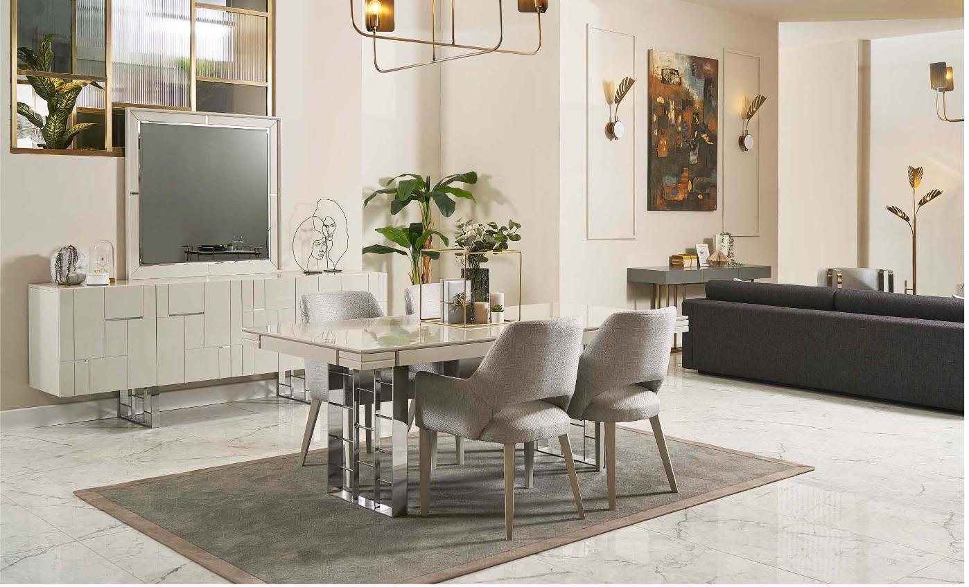 D'Sideboard an dësem Set huet eng impozant Längt vun 220 cm, ass 48 cm breet an 80 cm héich, bitt genuch Plaz fir d'Ënnerbréngung vun Iessgeschir, Besteck, a soss Kichengeschir. D'Spigel mam Mooss vu 108 cm x 5 cm x 108 cm ass perfekt fir d'Luucht am Raum ze reflektéieren an de Raum optesch ze vergréisseren. De 'Grupp Iesswénkel Iesszëmmer Iessgrupp Iesszëmmermiwwelen Set' ass ideal fir modern a minimalistesch Dekoratioun, a kann als Häerzstéck vun Ärem Iessberäich déngen. Egal ob fir onofhängeg Mëttesstonnen oder lëschteg Familljenowenden, dëse Set ass entworf fir Är Besoinen ze erfëllen an Äert Heem mat Stil ze verschéineren.