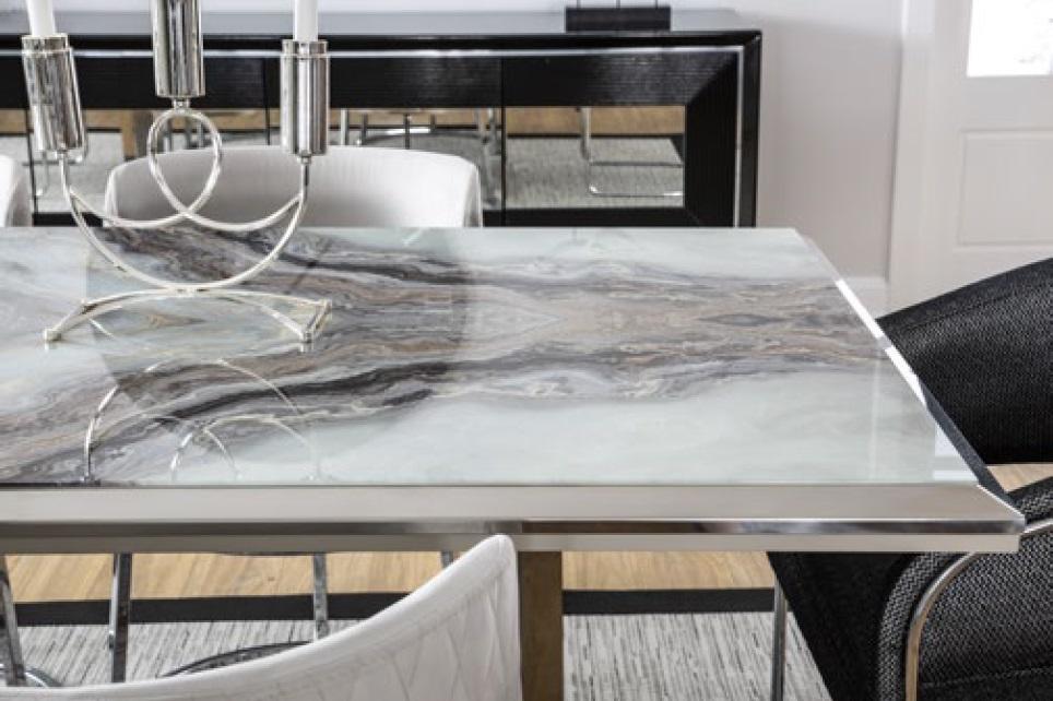 Dëse Set kënnt mat engem **raffinéierten Sideboard** vun 225 x 50 x 82 cm, perfekt fir d'Lagerung vun Dëscher, Besteck oder Dekoratiounselementer. D'Praktikitéit vun dësem Miwwel läit net nëmme säi komfortabele Sete Design, mee och a sengem fontionellen Aspekt, wat et erméiglecht, alldeeglech a speziell Occasiounen **stilvoll ze genéissen**. D'Plazopdeelung vun de Still: véier Stéck mat Dimensiounen 55 x 60 x 80 cm a zwee méi wéi 60 x 60 x 80 cm bréngt eng **perfekt Integratioun an de Raum** an erlaabt **Flexibilitéit bei méi grousse Versammlungen**. D'Iessgrupp Iesszëmmer Garnitur hëlleft Äert Heem mat Komfort an Stil ze verfeineren, a mécht Alldagend' Stonnen zu engem Genuss.