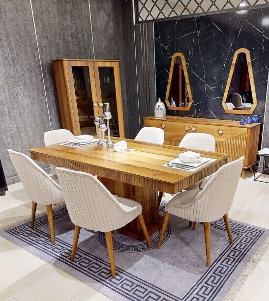 Exklusiv hellbrong Iesszëmmer-Set Holziessdësch 6x Stull Kredenz
