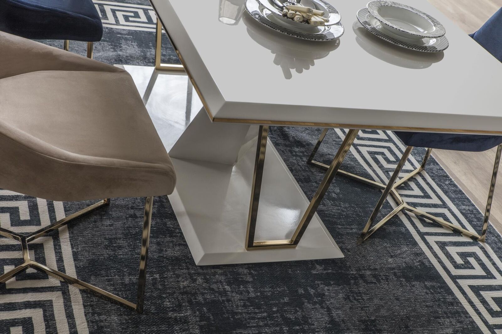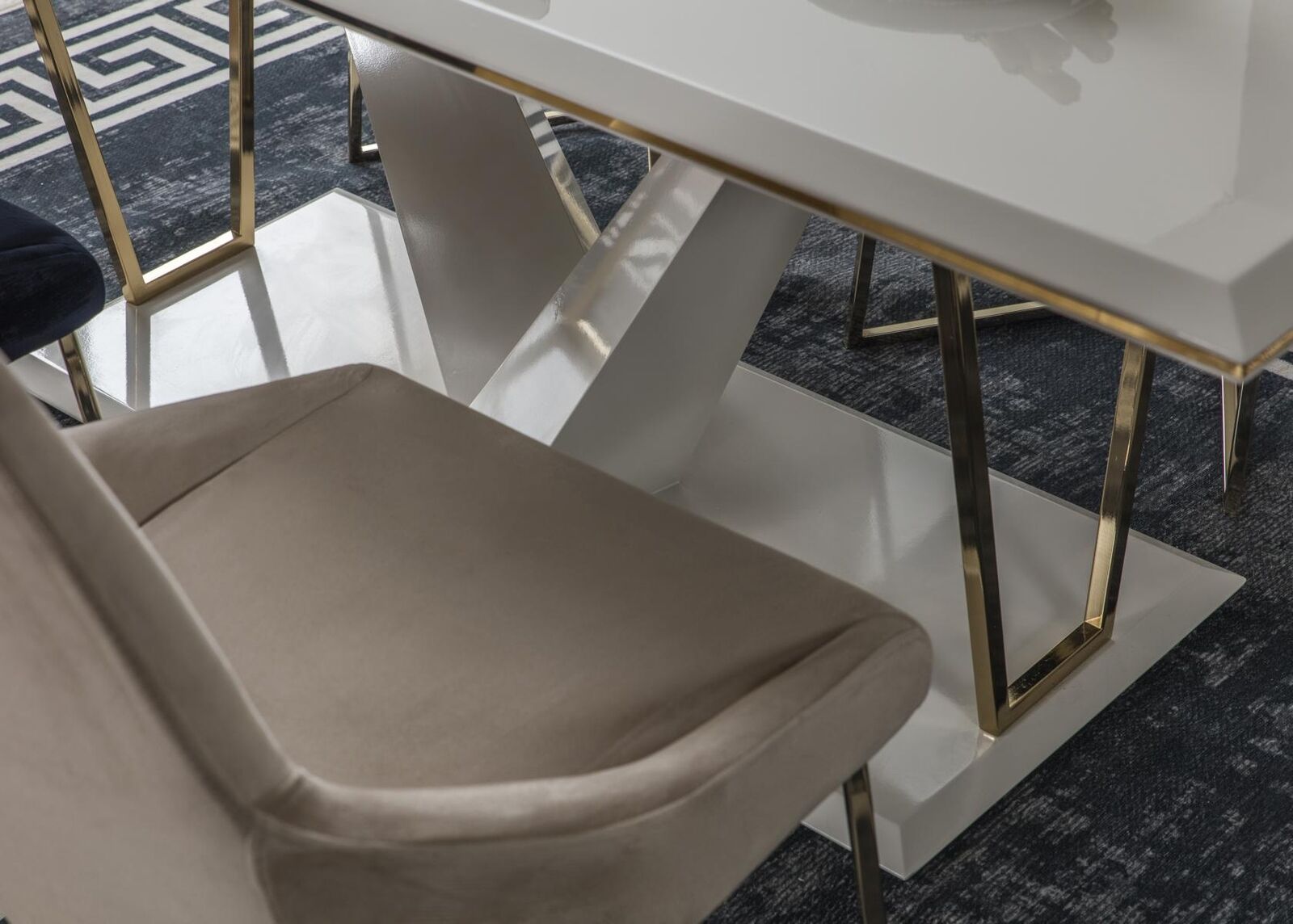Dës Iessegrupp ass ideal fir souwuel alldeegleche Gebrauch wéi och speziell Occasiounen. Dank der variabeler Faarfoptioun kann se perfekt op Äert Zëmmer ofgestëmmt ginn, a passt doduerch an all modernen oder traditionellen Dekorationsstil. Déi Innenstruktur aus echtem Holz garantéiert Robustheet an Langleefegkeet, sou datt dës Iessegrupp fir vill Joren ee beléiften Deel vun Ärem Heemparquet wäert sinn. Egal ob Dir Aarbechtssëtzungen oder Feierdeeg mat Äre Léifsten plangt, dës Garnitur bitt d'Flexibilitéit an de Stil, fir all Bedierfnësser gerecht ze ginn.