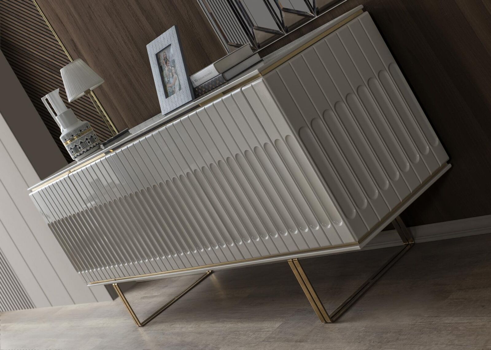 D'Garnitur 'Iessegrupp Iesszëmmer Iessdësch Sideboard Iessstull Iessegrupp Iesseck 6-tlg' ass déi perfekt Ergänzung fir Äert modern Iesszëmmer. Mat engem Iessdësch vun ongeféier 195 cm Längt a 95 cm Breet bitt dës Garnitur genuch Plaz fir en agreabele Moolzecht mat Frënn a Famill. De massiven Holzbau an de geschéckten Asaz vun héichwäertege Stoffer ginn der Zuammenstellung e stilvollen an zäitlos eleganten Optrëtt. D'Ensembel enthält och véier passend Still, déi mat hirer Héicht vun 96 cm a komfortablem Design fir en exzellenten Sëtzkomfort suergen. Zousätzlech kënnt d'Set mat engem prakteschen Sideboard vun 215 cm Längt an 50 cm Breet fir opgeriwwegt Verstauen an Iessen dorannen unzebidden.