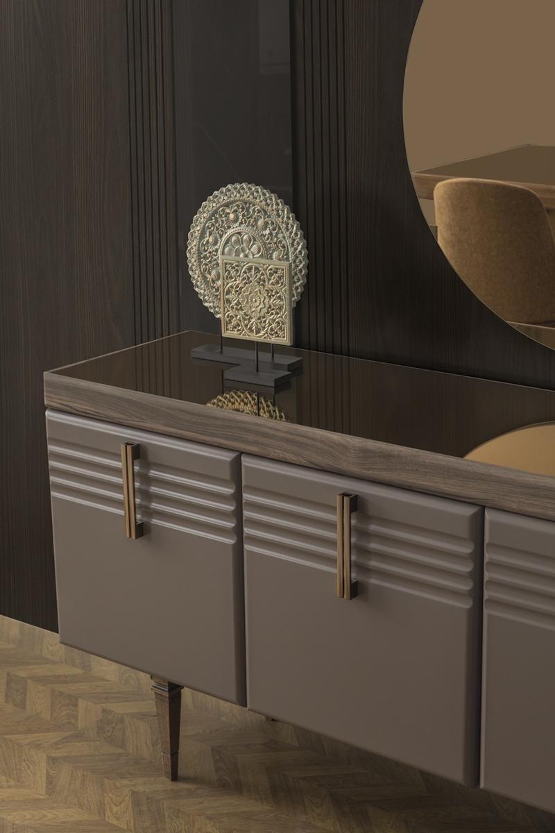 De Sideboard bidd eng enorm Späicherkapazitéit mat enger Längt vun ca. 208 cm, ideal fir Är Geschirren, Dekoratiounsartikelen oder Emféierungen praktesch opzeriichten. Déi ideal Setzoulag ass de Spigel, mat senge perfekt quadratesche Dimensioune vun ca. 90 cm x 90 cm, dee Räimlechkeet a Liicht an Ären Iessraum bréngt. Dëse Set kann einfach ugepasst ginn a verschiddene Faarwen op Ufro, wat et zu enger flexibeler Léisung mécht fir all Heem Dekor. Mat senger raffinéiert Kombinatioun vun Holz a Stoffer, ass den 'Iessgrupp Iesseck Iesssall Iessdësch Kapitelen Gro Holz Set 9tlg' net nëmmen e Mëttelpunkt fir Familljebesammlungen, mee och e Statement-Stéck an Ärem Interieur.