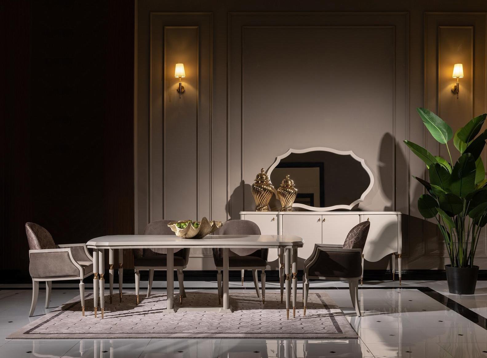 Ideal fir grouss an oppe Raim, dës Iessgrupp ass designt fir kommunizéiert Gesellegkeet an Harmonie an äert Heem ze bréngen. D'Verännerung vun den Still, mat engem Mix vun zimmlech grousser a kompakterer Still, bidden Flexibilitéit an Ënnerstëtzung. Eist Set ass perfekt fir all Occasiounen, vu formellen Dinnerpartyë bis zu deegerlechen Iesse mat der Famill. Vergiesst net déi beandrockend Spigel déi den Raum optesch vergréissert a Bonuspunkten ugoend einfacher ass. Mat dësem 9-Teile-Set bréngt dir Sofistikatioun a Funktionalitéit an är Iesszëmmer, a stäerkt eng Atmosphär vun Zäitlosegkeet an Heemlechkeet.