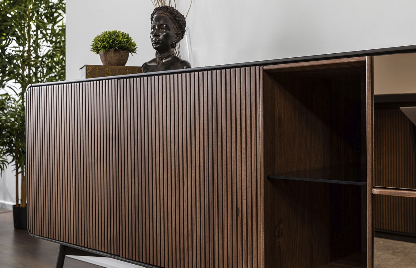 Fir extra Späicherplatz an Organisatioun suergt dat stilvoll Sideboard mat enger Längt vun 217 cm an enger Héicht vun 80 cm, déi genuch Raum fir Är Geschir an Accessoiren bitt. Dëst Set enthält och e Spigel, deen eng modern Visuel erhéicht an praktesch fir verschidde Plazen ass. D'Bank integréiert sech perfekt a jiddwer Zëmmer mat hirer 125 cm Längt. Dës Iesszëmmer Set ass ideal fir grouss Rencontreë wéi Feierdeeg oder speziell Geleeënheeten, a verleiht Ärem Raum eng sophistication Naach an Eleganz, déi sécher all Gäscht begeeschtert.