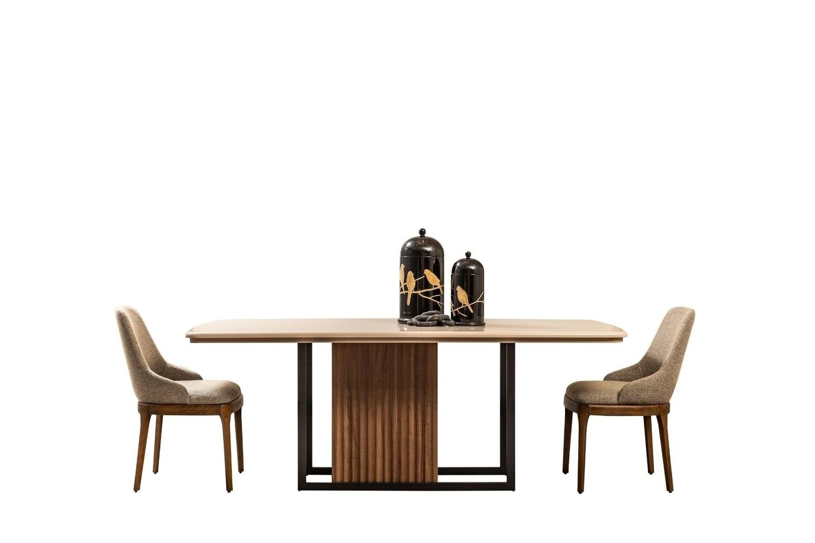 Den 'Iesszëmmer Iessgrupp Komplett Iessdësch Stull 9tlg Beige Iesseck Set' ass en elegante Set, deen **Stil an Fonctionalitéit** an äert Iesszëmmer bréngt. Mat engem **robuste Iessdësch** vun enger Längt vu ronn 20.8 cm, Breet vun 104 cm, an Héicht vu 78 cm, ass dësen Dësch perfekt fir déi deeglech Moolzechten oder speziell Occasiounen ze ënnerstëtzen. Déi **sechs inklusiv Still** hu komfortabel Dimensiounen vun 55 cm Längt, 50 cm Breet, an 90 cm Héicht, suerge fir souwuel Komfort wéi och Ënnerstëtzung fir e grousst Zuel u Frënn oder Familljememberen. D'Faarf vum Set ass wéi ofgebilt, wat seng **versatil Kombinatioun mat verschiddenen Interieur-Designs** erméiglecht, an op Ufro si **aner Faarwen verfügbar**. Mam Qualitéitsmaterial aus **Holz a Stoff**, bitt dëse Set eng laang dauerhaft Léisung fir ären Iesszëmmer.