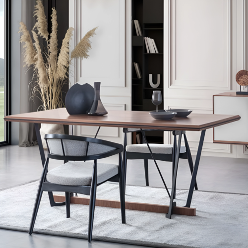 Dësen Dësch ass ideal fir grouss Familljen oder fir déi, déi gäre vill Leit bei sech empfänken. Mat sengem geräimegen Design bitt en Plaz fir méi Stullrondemär an erlaabt et Iech, behaglech Iessen a Gesellschaft ze genéissen. Dank sengem massiven Holzmaterial ass de Dësch stabil an kann einfach déi alldeeglech Notzung bei klenge wéi groussen Evenementer widderstoen. Iech gëtt och d'Fräiheet, den Dësch mat verschiddenen Accessoiren ze dekoréieren, fir Är perséinlech Note eriwwerzebréngen an d'Atmosphär ze verbesseren. De 'Iesszëmmerdësch Holzdësch' ass also net nëmmen en funktionellen Mëttelpunkt fir Iessen, mee och en esthetescht Stéck, dat Äert Heem verschéinere wäert.