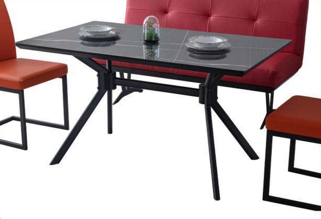 Modern Iesszëmmer Miwwelen Schwaarzen Iessdësch Konschtleedert Stiller Luxus Bänk