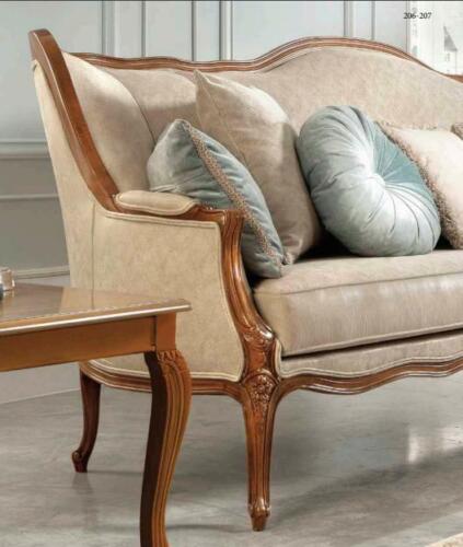De **Dräisëtzer Canapé Couch Polstersofa Canapéë** ass déi ideal Ergänzung fir all modern Wunnzëmmer. Mat sengen Dimensiounen vun **250 cm an der Längt**, **90 cm an der Déift** a **105 cm an der Héicht**, bitt dëse Canapé genuch Plaz fir dräi Persounen a suergt fir e **bequem Sëtzgefill**. Dank engem **Sëtzdéift vun ca. 64 cm** an enger komfortabel **Sëtz Héicht vun ca. 42 cm**, ass dëse Canapé déi perfekt Mëschung aus Eleganz a Komfort. D'Faarf entsprécht genee dem Bild, während d'Materialien eng Kombinatioun aus **massive Holzstrukturen** an **qualitéitsvollem Stoff** sinn, déi Hëtzt an Charme an all Raum bréngen.