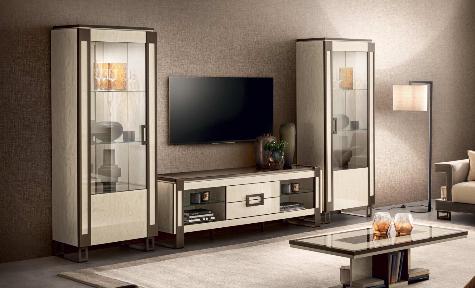 Dëse Set ass ideal fir all Wunnzëmmer oder Iesszëmmer, wou Usproch op Käschten an Ästhetik gläich wichteg sinn. D'Vitrinnen erméiglechen et Iech, Är Lieblingsobjeten wéi Büchsen, Vasen oder aner dekorativ Elementer op eng stilvoll Manéier ze presentéieren, während dat geräimecht Sideboard mat senge vill Stauraumméiglechkeete fir Uerdnung an Organisatioun suergt. Den 'Design Wunnwand' Set ass perfekt fir déi, déi hir Wunnfläch optimiséieren a beandrockend Design mat prakteschen Notzen kombinéiere wëllen.