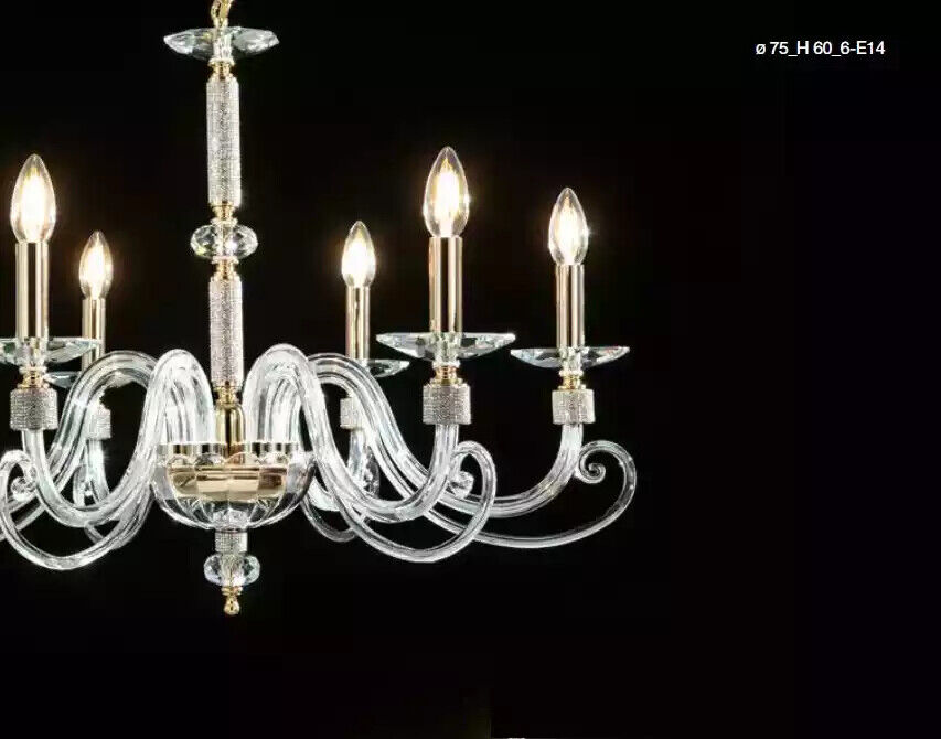 Den Kristall-Pendelluchter, Krounluchter, Hängeluchter, Plafongsluchter ass en dynamesche Kombinaziounsstéck vu Schéinheet a Funktionalitéit. Mat engem elegante Design dee Metall mat authentische Kristaller kombinéiert, gëtt dësen Luchter eng gewësse Raffinesse a Klass un all Raum. Mat sengem Dimensioune vun 75 x 60 cm mécht dësen Hängeluchter en Ament an all groussem Raum oder ënner enger héijer Plafong. Den Luchter huet sechs Luuchten, déi all mat enger E14 Fassong ausgestatt sinn, wat Iech erlaabt, kreativ mat Liichtintensitéit an Atmosphär ze spillen, well hien och dimsbar ass.