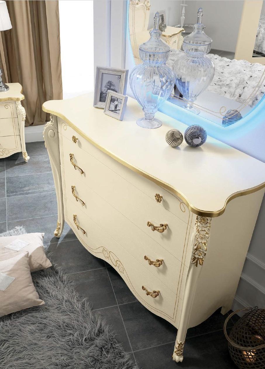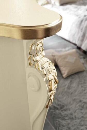 Schlofzëmmer Set Beige Schlofzëmmer Bett Nuetsdësch Kommode Spigel Stull 6 Deeler.