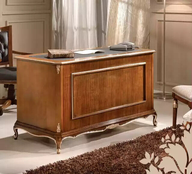 Dëse Schreifdësch passt perfekt an en existenten Dekor vun engem professionelle Büro oder engem gemittlechen Heem-Studiezëmmer. Hien ënnerstëtzt eng gutt Organisatioun vun den Aarbechtsmaterialien, wärend seng klassesch Schrëftgezei d'Kreativitéit an d'Produktivitéit förderen. Dank senger praktischer Gréisst an der raffinéierter Holzstruktur kann dësen Dësch souwuel als Aarbechtsberäich wéi och als Plaz fir artistesch Aktivitéiten oder Studien benotzt ginn. Egal ob Dir un detailléierte Projeten schafft oder einfach eng oppene Plaz fir Är Gedanke braucht, dëse Schreifdësch bitt déi richteg Ënnerstëtzung fir all Är Aktivitéiten.