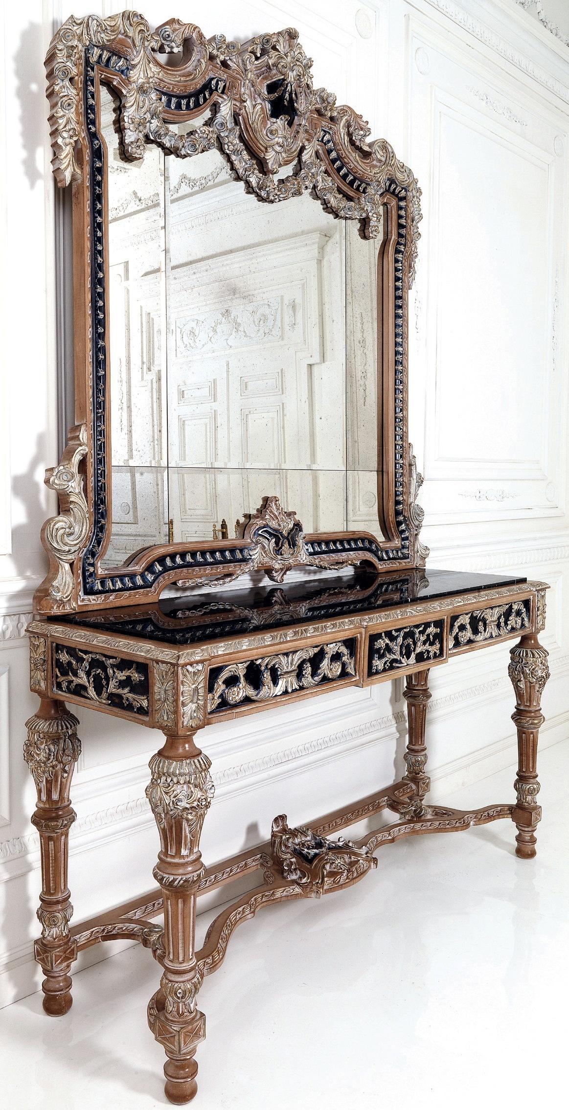 Konsolendësch, Wunnzëimmermiwwel, schmuelen Dësch, Spigel