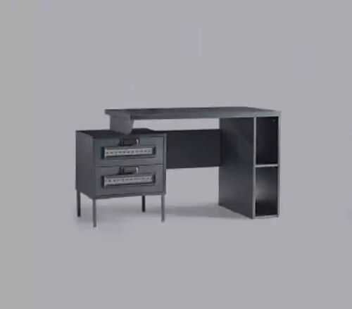 De Modernen Schreifdësch Kanner Schreifdëscher schwaarz Dëscher Miwwelen Dësch ass e stilvollen an héichfunktiounellen Schreifdësch, dee perfekt ass fir d'Besoine vu Kanner an Heem ze erfëllen. Mat sengen Dimensioune vun ongeféier 140 x 60 x 78 cm bitt en genuch Plaz fir Bicher, Schreifuntensilien a Computerausrëschtung. Den Dësch ass aus héichwäertegem Holz gemaach, wat fir seng Langlebegkeet a Stabilitéit suergt, wärend déi modern schwaarz Faarwe sech einfach an all Interieur integréiert. Eng wonnerbar Mëschung aus Funktionalitéit an Ästhetik, dësen Dësch ënnerstëtzt d'Konzentratioun an déi kreativ Entwécklung vun Ärem Kand.