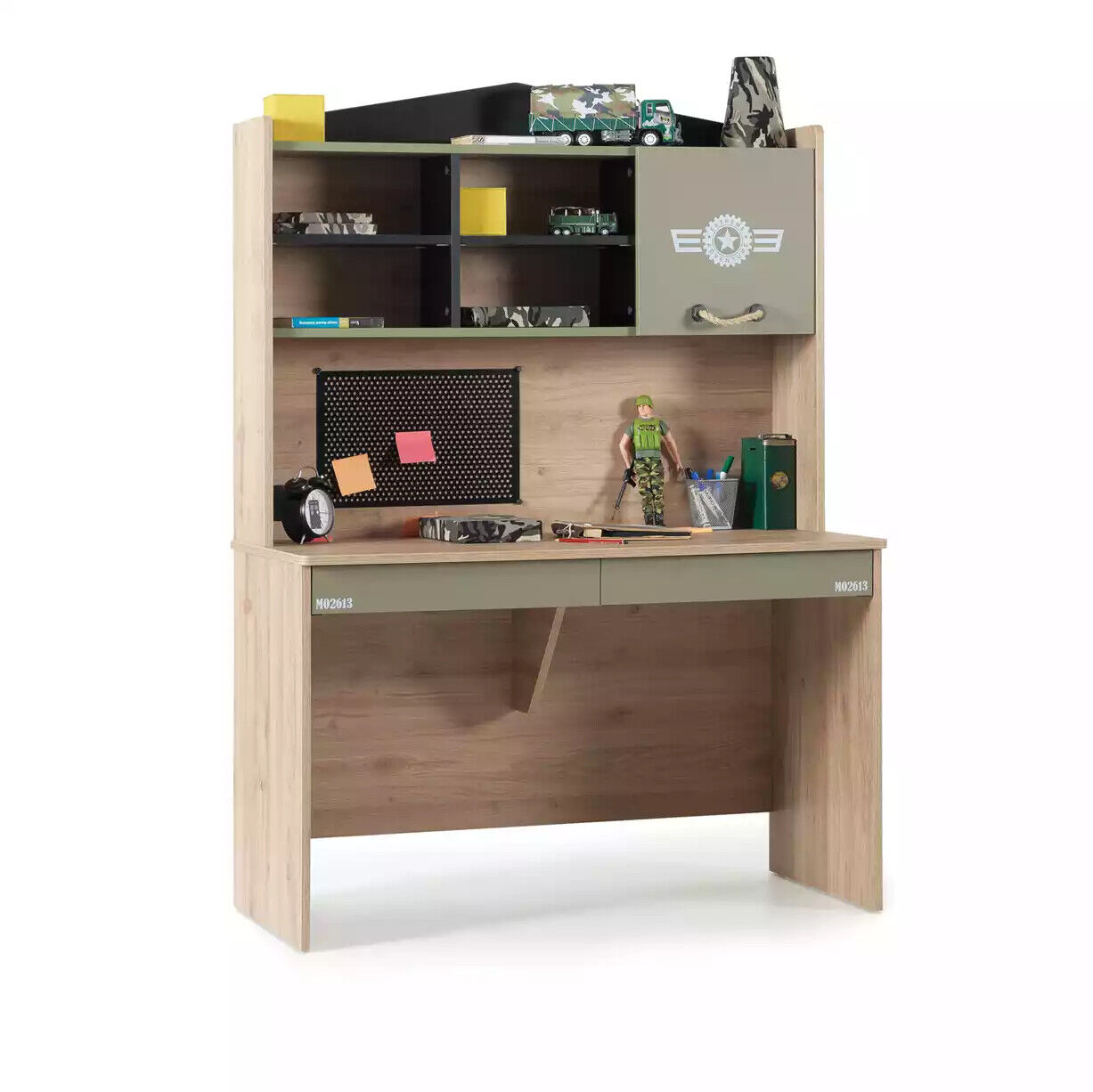 Garnitur Schreifdësch Set Holz Dësch Bichieraf Regal Gréng Kannerzëmmer