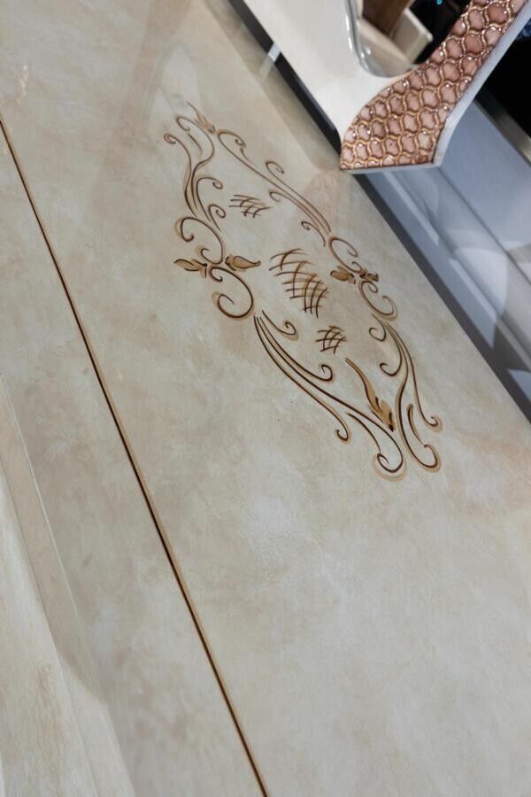 Eng exzellent Zousatz zu dësem Set ass d'Kommodë mat Spigel, mat Dimensiounen vun ongeféier 220 x 55 x 100 cm, déi e raffinéiert a praktescht Element an Ärem Iesszëmmer derbäi füügt. Mat sengem groussen Spigel an der schéiner Veraarbechtung, ass et perfekt fir eng elegant Atmosphär ze kreéieren an de Raum optesch ze vergréisseren. Dësen Set ass ideal fir eng grouss Ronn Iess- oder Feierdeeg mat Gäscht ze hosten a kann och als Styl-Statement fir e modernt a luxuriéis Iesszëmmer déngen. Entdeckt d'Verbindung vu Funktionalitéit an Eleganz mat dësem aussergewéinlechen Iesszëmmer Set.