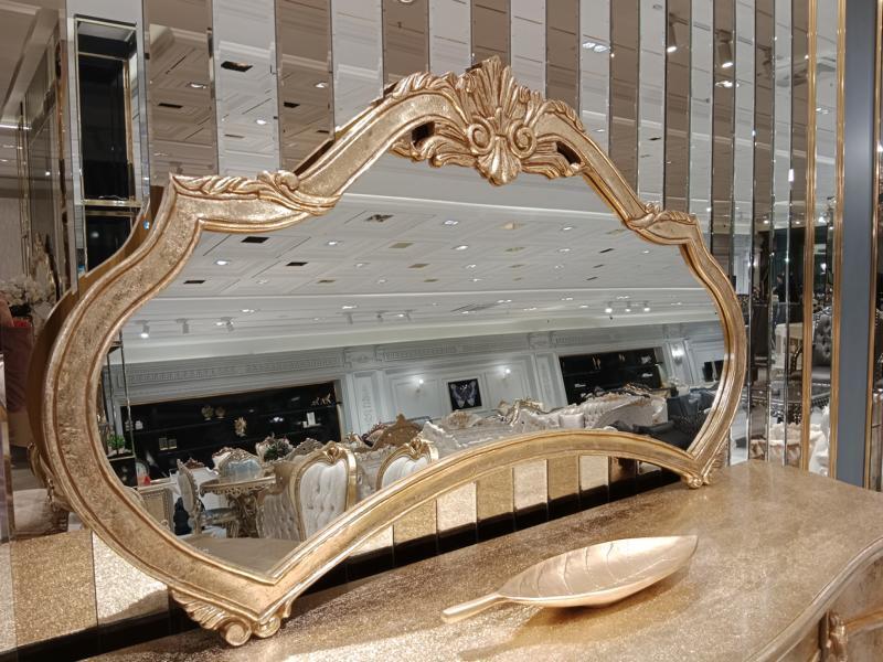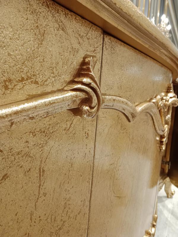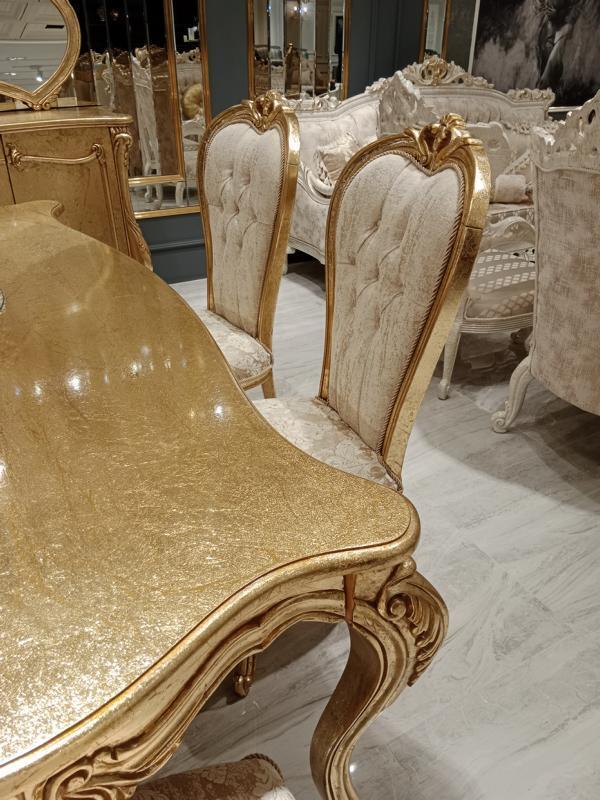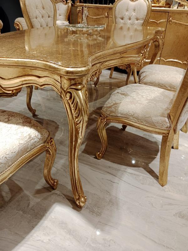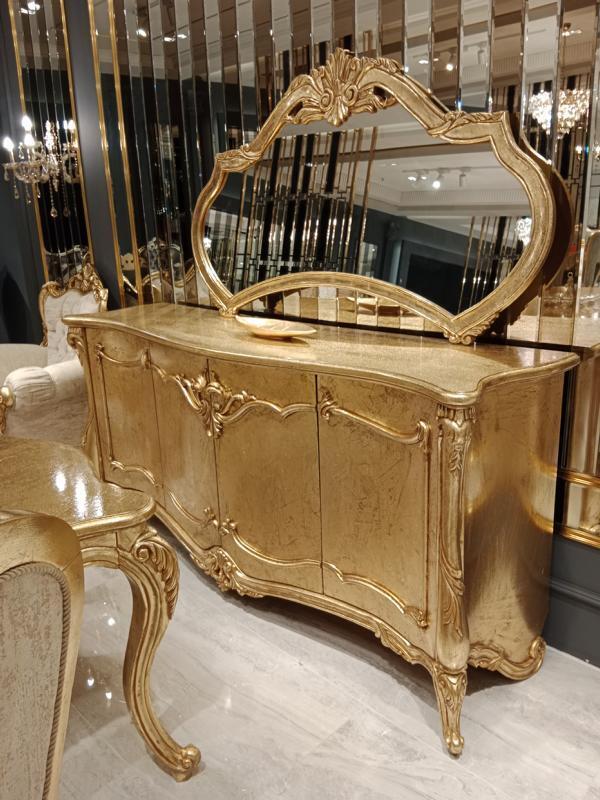 Klasseschen Iessdësch + 6x Still + Anrichte mat Spigel Gold Holz Kommode Nei