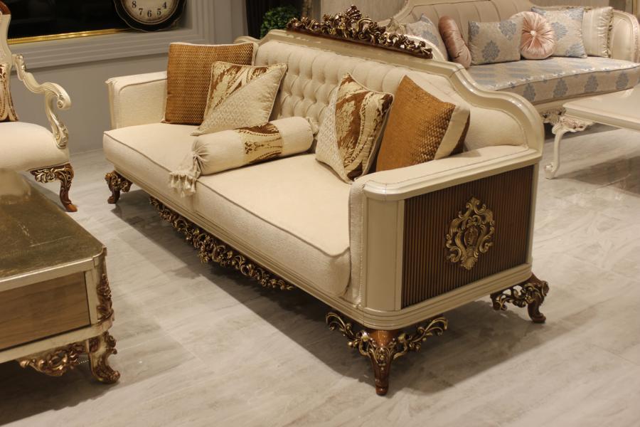 Luxe 3 Plazen Canapé Wunnzëmmer Miwwelen Elegant Canapé 3 Plazen Textil Beige