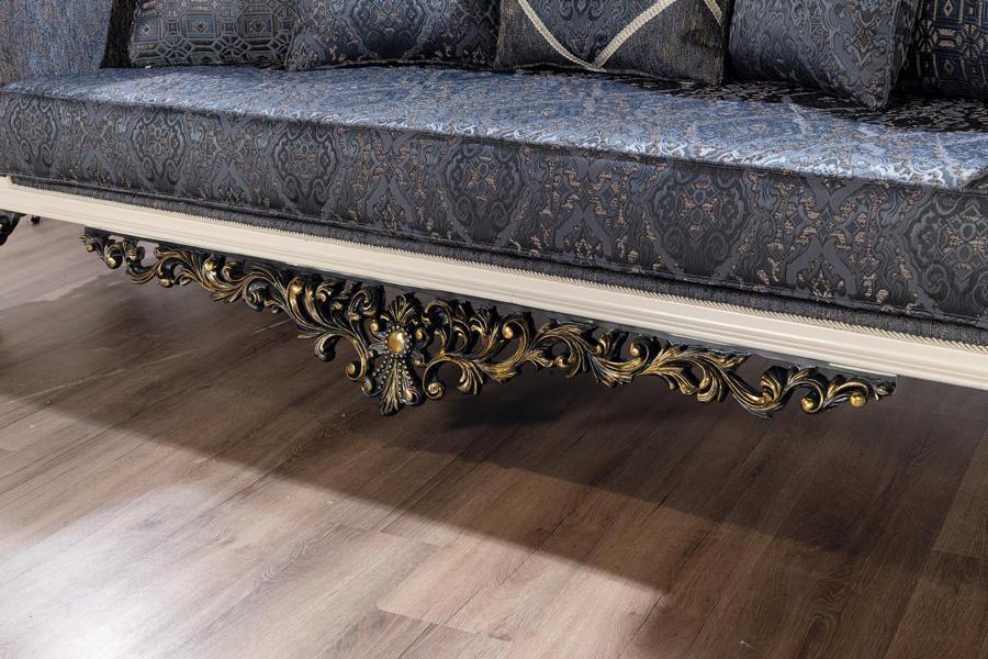 Dank sengem stilvollen Design a praktesche Gréisst, ass dëst Sofa ideal fir villfälteg Notzungszwecker - sief et fir engem gemittleche Owend mat Ärer Famill, als Akzentstéck an engem grousse Wunnbereich, oder fir Gäscht bequem bei engem Empfang ze empfangen. Mat senger immens bequemer Polsterung an der elegant klassescher Ausstralung, ass dëst Luxus Sofa déi perfekt Kombinatioun vu Stil an Funktionalitéit. Ob Dir et benotzt fir eng déif Gespréichsrond ze féieren oder einfach fir e puer Momenter vun Rou an Entspanung, dëst Stéck wäert sécherlech all Är Erwaardungen iwwerschreiden.