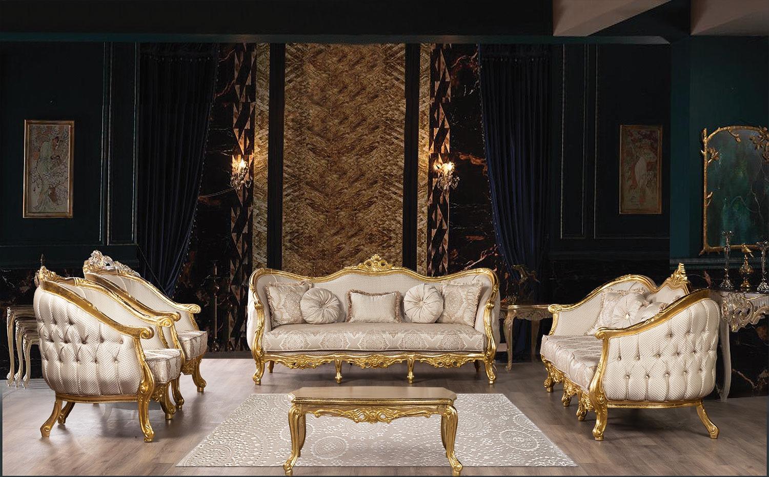 Luxus Canapé Klassesch Dräisëtzer Sofa Couche Miwwelen Ariichtung Stoff Sofa