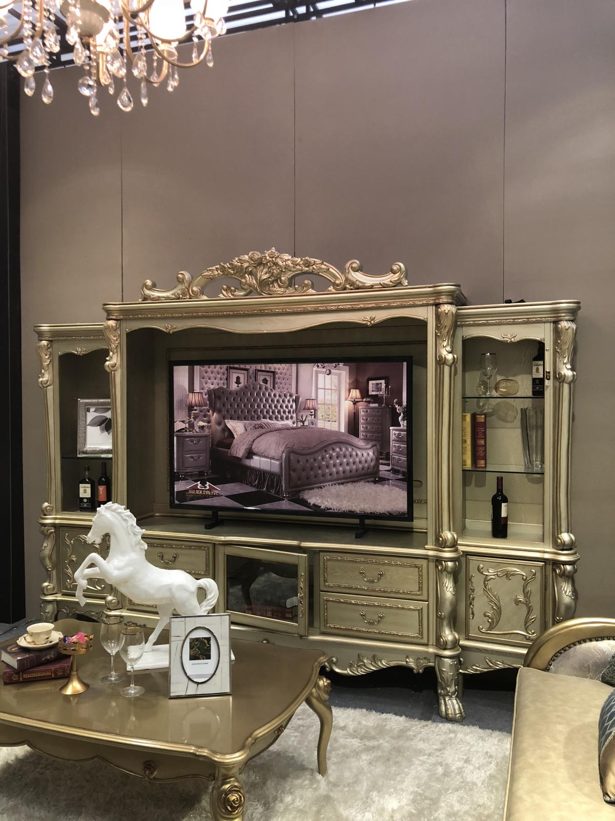 Dank sengem duebeler Zweck als **Medienzentrum** an **Televisiounsschaf** ass dës Wunnmauer ideal fir déi, déi hir Entertainment-Gadgeten op eng organiséiert an elegant Manéier presentéiere wëllen. Mat enger Déift vun ca. 49 cm erlaabt se reichlech Späicherplaz fir Verstäerker, Spillerkonsolen an aner Medienapparater. Dëst Mobiliärstéck ass net nëmmen funktionell, mee et déngt och als artistesche Mëttelpunkt, wou d'schnitzlech Detailer zur Geltung kommen. Egal ob et fir eng Iwwerdroung vun der läschter Serie ass, oder als **Konschtinstallatioun** selwer, dës Wunnmauer ass déi perfekt Ergänzung fir Äre Liewensraum.