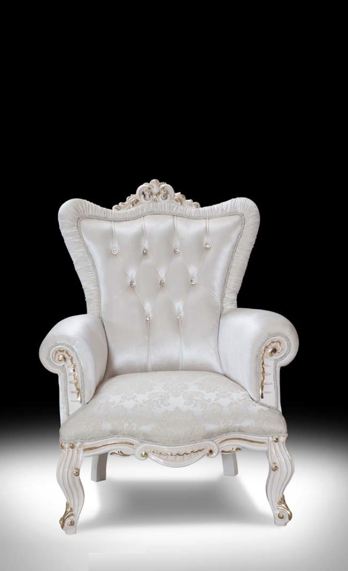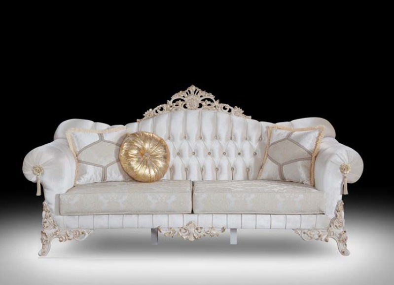 Luxuriéis Sofagarnitur fir d'Wunnzëmmer am klassesche Stil an der Faarf Wäiss.