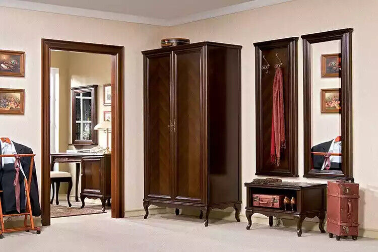 De 'Schaf Kleederschaf Schlofkummer Schief Braun Modern Holz Luxus' ass e stilvollen an nach méi praktesche Kleederschaf, dee perfekt op all modern an luxuriéis Schlofkummer ofgestëmmt ass. Mat senge Moossen vun ca. 114.5 x 60 x 206 cm bitt dëse Schaf genuch Plaz fir all Är Kleeder a perséinlech Saachen ze verstauen. Dir kënnt d'Faarf fräi wielen, déi un Äre perséinleche Goût ugepasst gëtt, fir dat perfekt Stécker an Ärem Heem z'ergänzen. De Korpus besteet aus zoliddem, lackéiertem Massivholz, wat net nëmmen Engagéierung, mee och Langlebëgkeet garantéiert.