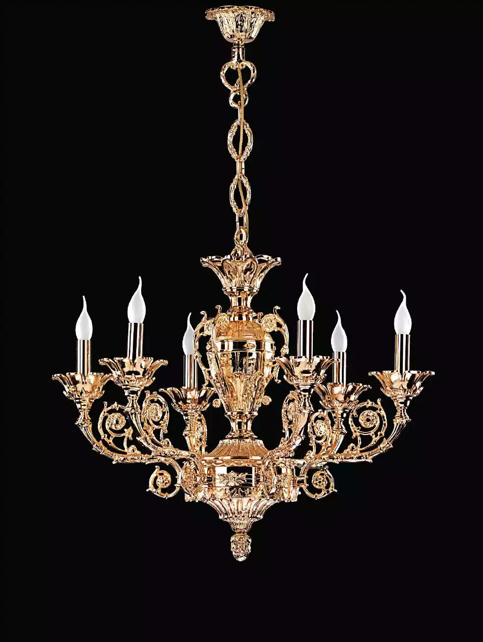 Entdeckt d'raffinéiert Eleganz vun der Gold Deckenluchte Hängeleuchte Wunnzëmmer Luuchten Klassesch Luuchten, déi perfekt ass fir Äert Heem mat engem Hauch vu Klassik ze verschéineren. Dës hänkegt Plafongsliicht schaaft en aussergewéinlech raffinéiert Ambiance an all Raum a liwwert eng eemoleg Kombinatioun vun ästheteschem Design an héijer Funktionalitéit. D'Modell BS.6754-58-06 huet eng majestéitesch Gréisst vu 80 x 115 cm, an ass aus héichwäertegem Messing hiergestallt, wat net nëmme fir e luxuriéisen Erscheinungsbild suergt, mä och fir laang dauerhaft Haltbarkeet. Mat senge 6 Luuchten an der E14 Fassong, schenkt dës Luucht all Raum en erfrëschend a wueltemperéiert Liicht.