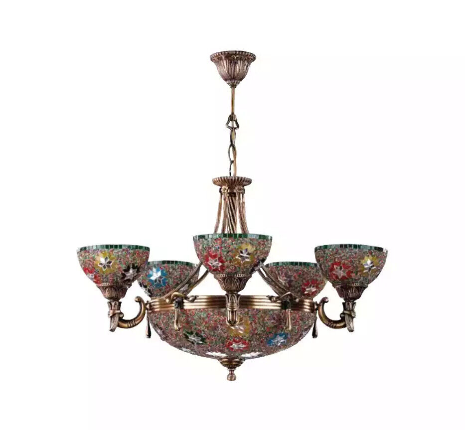 De 'Plafongluuchten Lüster Krouneluchter Plafonglamp Luuchten Glas Lampe Luuchten' ass eng elegant a stilvoll Ergänzung fir all Interieur. Mat engem Imposanten **Duerchmiesser vu 70 cm an enger Héicht vu 77 cm**, stellt dësen Lüster eng perfekt Beliichtungsléisung fir grouss Raimlechkeeten duer. De Luchter besteet aus héichqualitativen **Materialien wéi Messing, Zinklegierung a Glas**, déi net nëmmen Haltbarkeet, mee och en elegante Look garantéieren. Mat Plaz fir **fënnef E27 an dräi E14 Luuchten**, schaaft dësen Lüster eng warm an uniform Liichtung déi all Zëmmer opwertert.