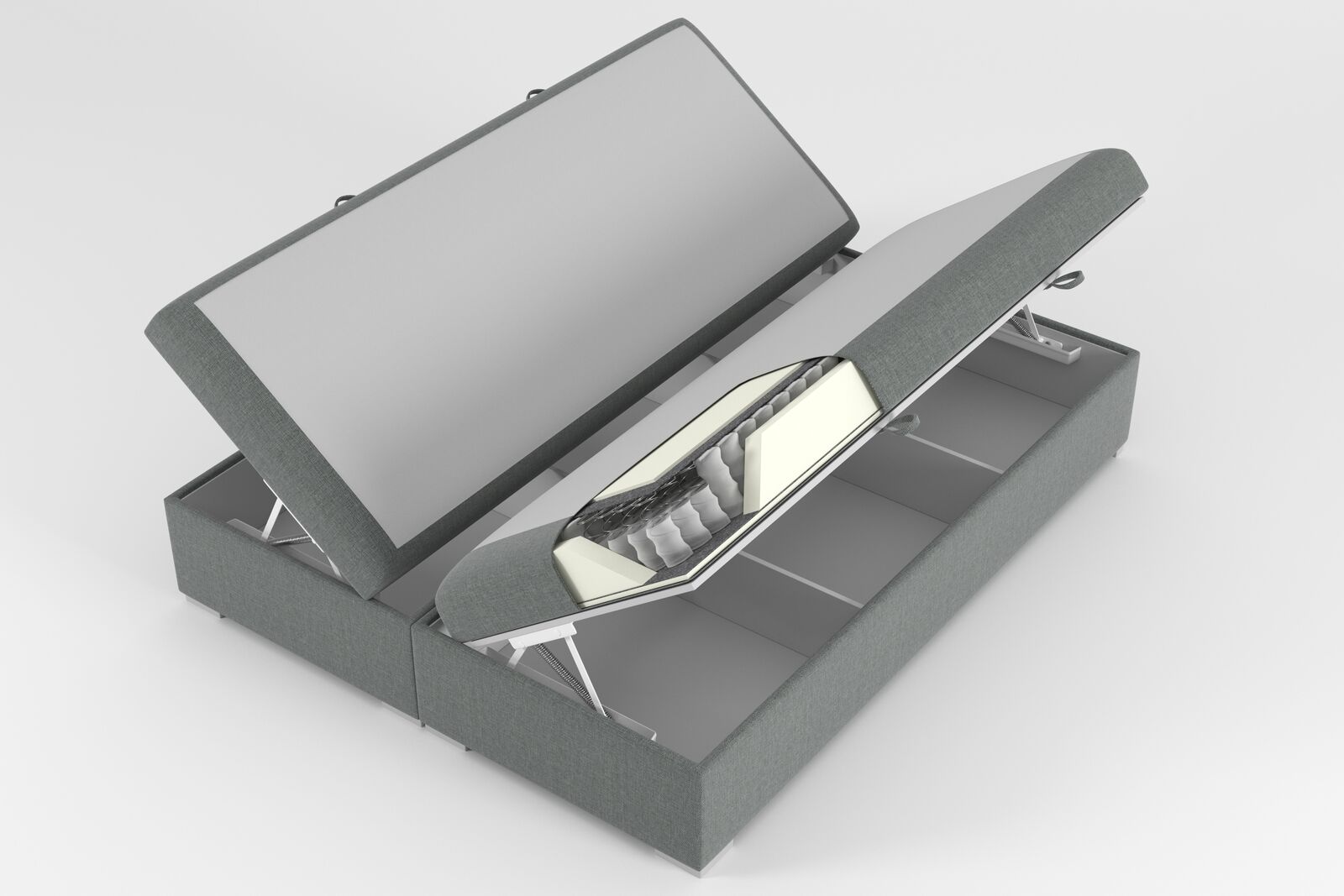 Am Liwwerumfang ass e Boxspringbett (inkl. Matratz + Topper) abegraff.