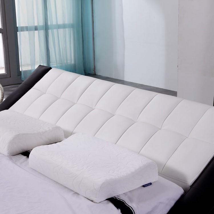 Dëst multifunktionale Bett ass net nëmmen duerchschnëttlech fir e gudden Nuetsrescht, mee bitt och praktesch Léisungen mat integréierten Abstellméiglechkeeten a Regaler, déi ideal fir kleng Raim sinn. Egal ob Dir d'Hôtelambiance doheem schafen wëllt oder einfach nëmmen e stilvollen Touch zu Ärem Zëmmer bäifügt, dëst Bett ass perfekt! Et ass en exzeptionellen Choix fir all déi, déi e modernen a gläichzäiteg fonctionnelle Look an hire Schlofzëmmer sichen. Déi verschidden Materialoptioune giirt d'Adaptabilitéit vun dësem Produkt un Är spezifesch Preferenzen garantéieren, während d'Méiglechkeet fir individuell Faarfwahl Iech erlaabt, en Inhalt ze kreéieren, deen perfekt mat Ärer bestehender Dekoratioun harmoniséiert.