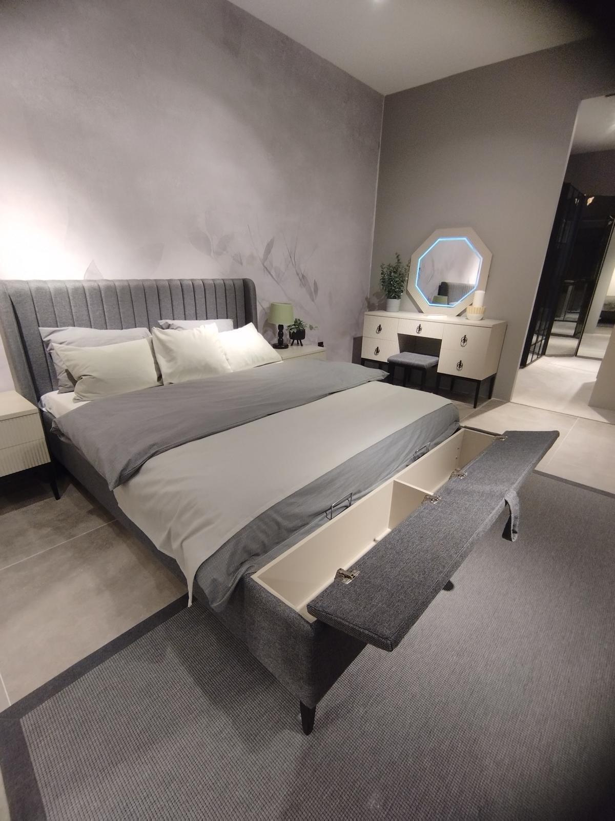 Luxuriéist Bett mat Bänk, Schlofzëmmer, Exklusivt Design, Héichwäerteg Veraarbechtung