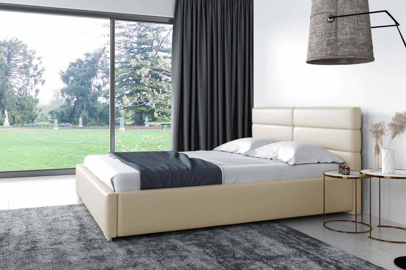 Ausserdeem ass d'Bett individuell upassbar mat **verschiddenen Leeflächmoossen** vun 120 cm bis zu 200 cm Breede a verschidden **Materialoptiounen**, dorënner Stoff oder Premium Kënschtläder, a verschiddene Faarwen. Souwuel d'Materialwahl wéi och d'Faarfoptiounen erlaben et, dëst Bett perfekt un Ären Interieur unzepassen. D'Bett ass ideal fir Hoteller, déi e modernen an erhuelsamen Schlofraum bidden wëllen, awer och fir privat Wunnengen, déi e gréissere Komfort an stilvolle Eleganz sichen. Optional kënne **Bettkëscht** an **Matratz** derbäi bestallt ginn, fir dat kompletten Schlofkonzept ofzeronnen an Iech een erhuelsamen Schlof ze garantéieren.