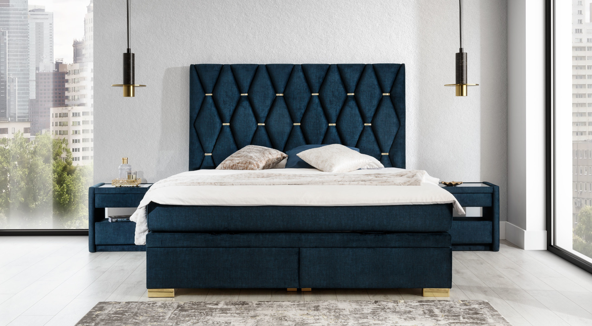 Dëst Set ass déi ideal Léisung fir jiddereen, dee säi Schlofzëmmer an eng Stëmmung vu Rafinesséierung a Funktionalitéit verwandelt wëll. E puer Zouschaussoptioune si fir déi, déi nach méi Luxus wëllen, mat méi deieren Stoff- a Kënschtlédergruppe verfügbar. Dëst Set passt perfekt an all modern oder klassesch Interieur, an et ass déi ideal Wiel fir Koppelen déi en elegant an harmonesch Schlofzëmmer Design sichen. Färbt Äert Schlofzëmmer a stilvollen Nuancen op an ännert Äre Raum mat dësem makellosen Set an eng friddlech and häerzlech Asilé siicht, déi Komfort a Stil vereent.