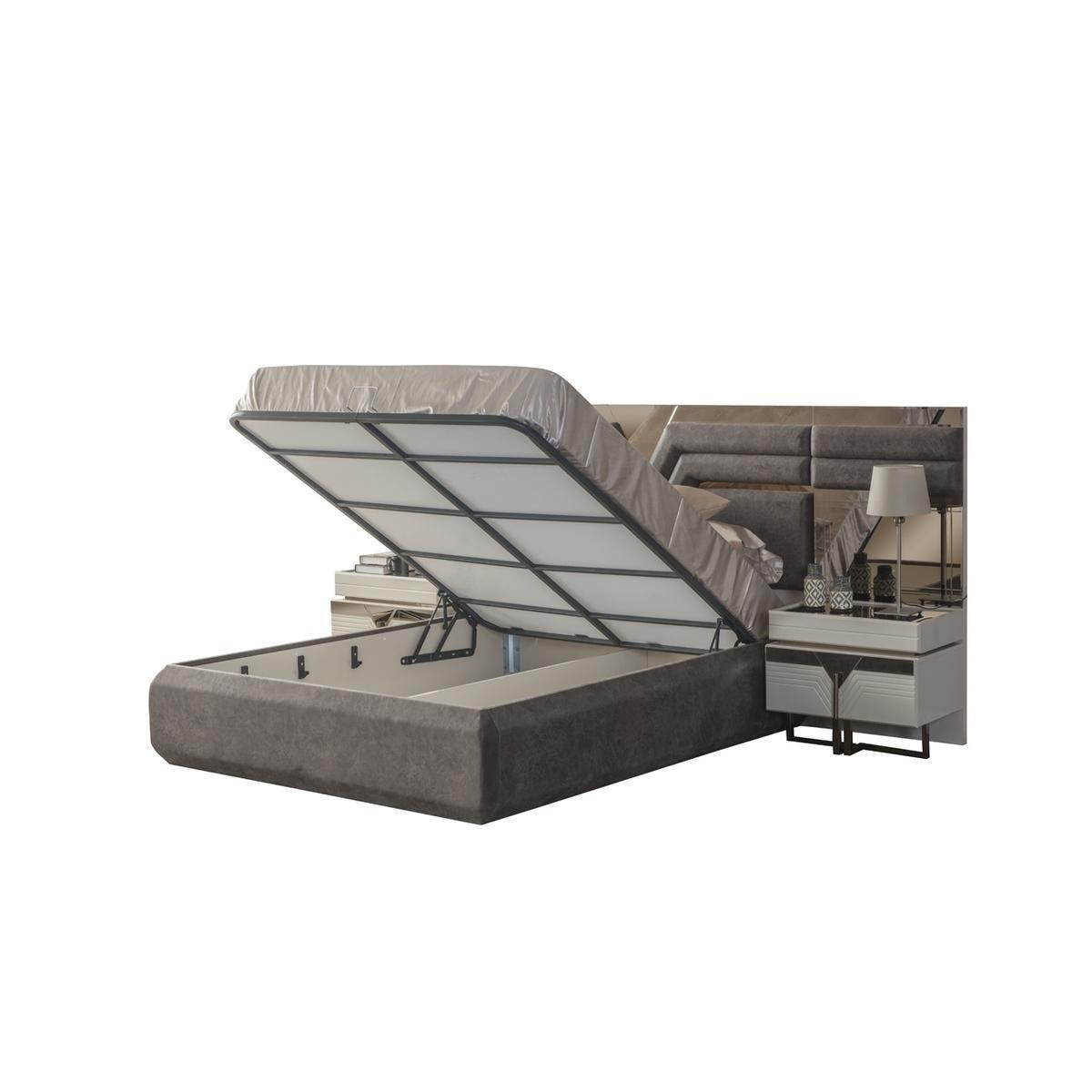 Schlofzëmmer-Garnitur duebel Bett, Bett-Nuechtstëscher 4-Teileg Gri, Schaf
