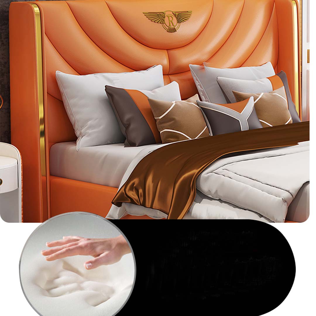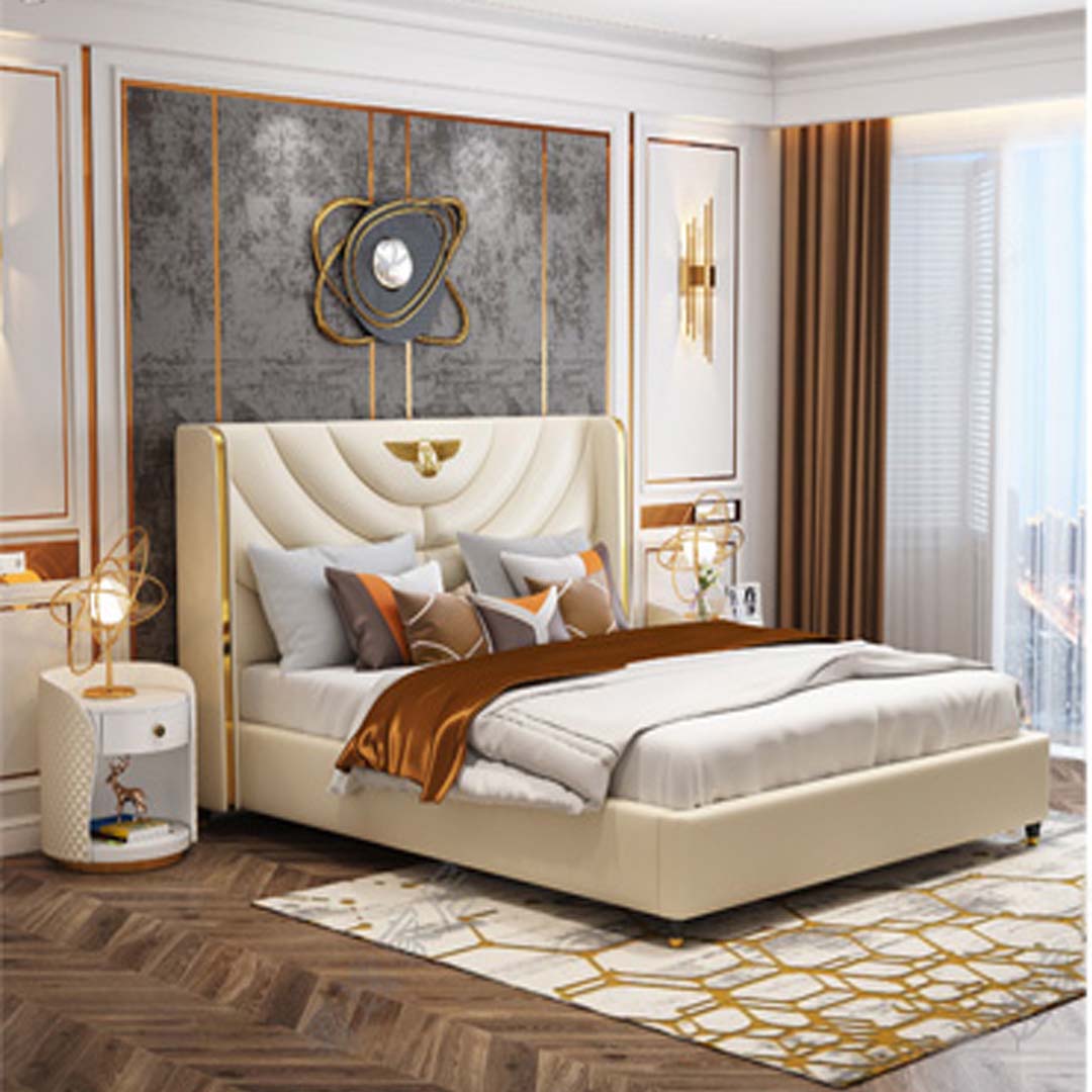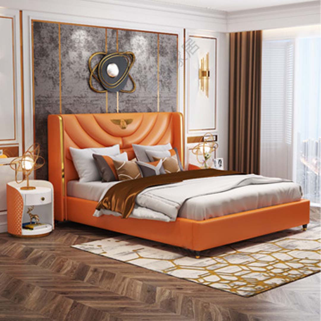 D'Inneregestell vum Bett ass aus echtem Holz gemaach, wat sécherstellt, datt et staark a bestänneg bleift mat der Zäit. Dës Kombinatioun mécht et perfekt fir hotelaresch Ëmfelder oder privat Heem, wou Design a mehrfach zousätzlech einfache Luxus wichteg sinn. Stellt Iech vir, wéi Dir no engem laange Dag op dësem betrillegene Bett ausraste kënnt, ëmginn vun der Wierme a Schéinheet vun natierlechen Materialien. Egal ob fir den Alldag oder speziell Geleeënheeten, dëst Bett mécht all Nuecht zu engem verwinnt Erliefnes.