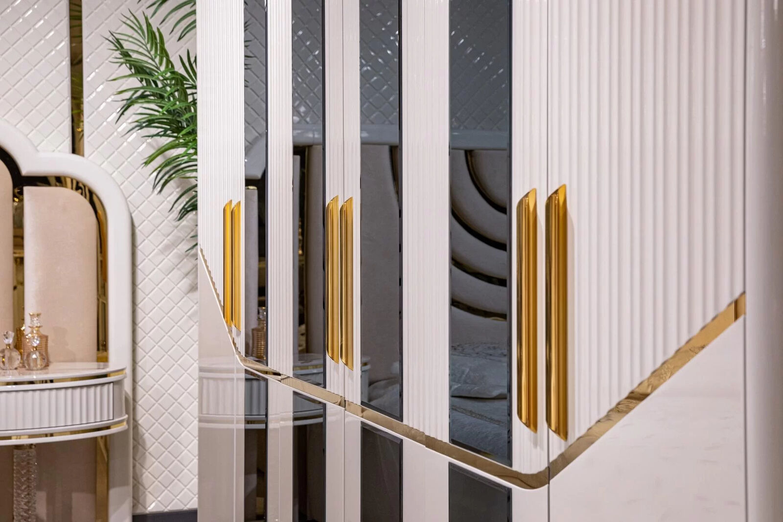 Kleedersschaf Schief Schaf Design Holz Beige Gold Modern Miwwel 270cm