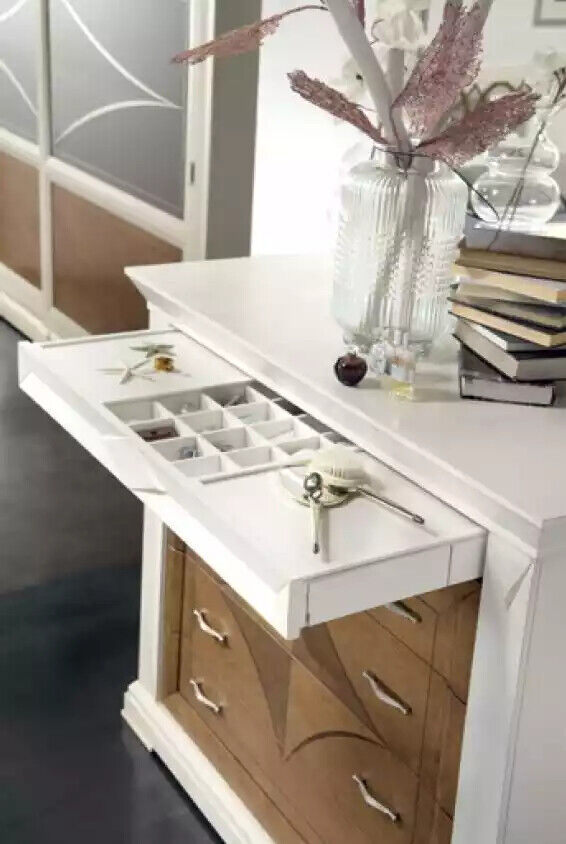 Zousätzlech zur wonnerbarer Esthetik sinn déi aner Komponenten am Schlofausstatungsset sou funktionell wéi schéin. D'Kommode bitt vill Stauraum mat engem Mooss vun 134,5 x 57,5 x 116 cm, perfekt fir Är Kleeder a perséinlech Elementer organiséiert ze halen. De Spigel mat enger Gréisst vun 109,5 x 89 cm ergänzt de Set, hëlleft den Raum méi grouss a méi hell ze maachen. Eng vill Plaz bidd och d'grouss Garderob vu 300 x 69 x 251 cm. Mat dëser ëmfaassender Léisung kënnt Dir Äre Schlofraum personaliséieren an Äert Alldag verbesseren, wärend Dir Ärem Stil Ausdrock verleiht. D'Klassescht 6-Deeler Schlofausstattung ass déi perfekt Wiel fir déi, déi konventionell Dekor mat funktionell Gestaltunge kombinéiere wëllen.