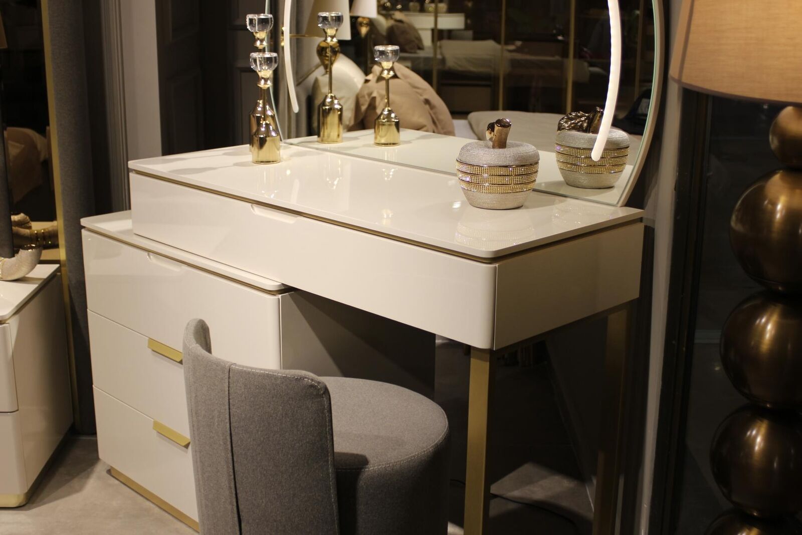 Zousätzlech bitt dësen Zëmmer-Set e prakteschen **Kleederschaaf** mat enger beandrockender Gréisst vun **ca. 230 x 450/197 x 61 cm**, perfekt fir all Äert Gewand z'organiséieren. Mat der inklusiver **Kommod** vun **ca. 80 x 45 x 112 cm**, bidd Dir Iech weider Späicherplaz fir alldeeglech Notzung. Fir déi, déi no engem Plaz fir hir Behandlunge sichen, ass de **Schminktisch** mat integréiertem **Spigel** ideal. Erausfuerderend, funktionell a stiilvoll, dëse Set mécht Äre Schlofzëmmer net nëmme schéin, mä erliicht och Äert Liewen duerch seng praktesch Features. Egal ob Dir Äert Schlofëmfeld verbessert oder nei Ariichtung dës Set perfekt ass fir e modernen an zäitlosen Design zu kreéieren.