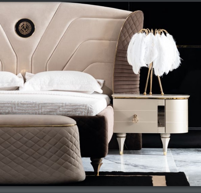 Luxus Set Schlofzëmmer Bett Nuetsdësch Kommode Hocker Grupp Garnitur Nei 5 Stéck.