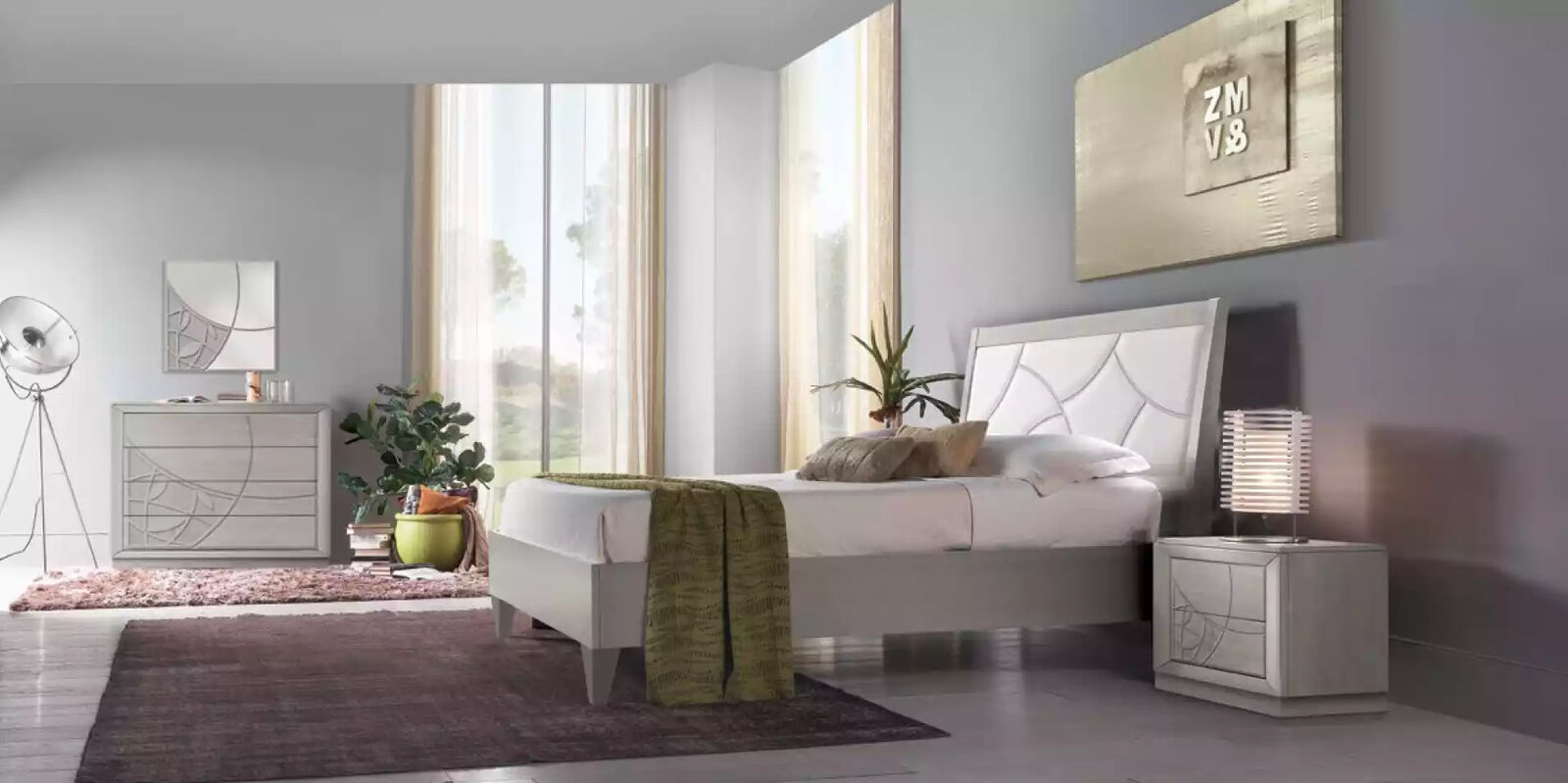 Schlofzëmmermiwwel, Schlofzëmmer Set, Bett, Komoud, Nuetsschaf