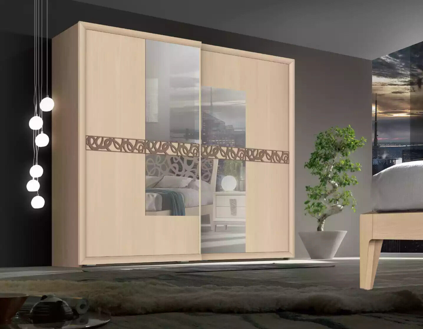 Schlofzëmmer Set Bett 2x Nuetsdëscher Kleederschaf Design Luxus nei 6tlg
