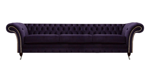 Design Chesterfield Wunnzëmmer Dräisëtzer Sofa Couch Lila Polstermöbel
