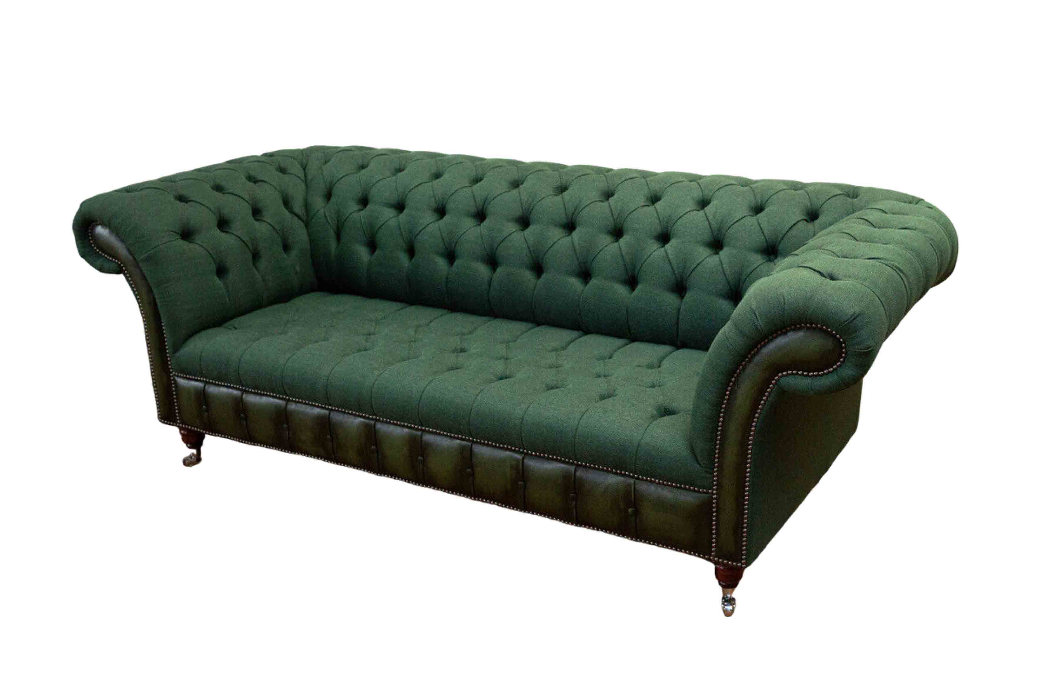 Chesterfield Sofa 3-Sëtzer Canapé Polsterstoff Lieder Couchen Textil Nei