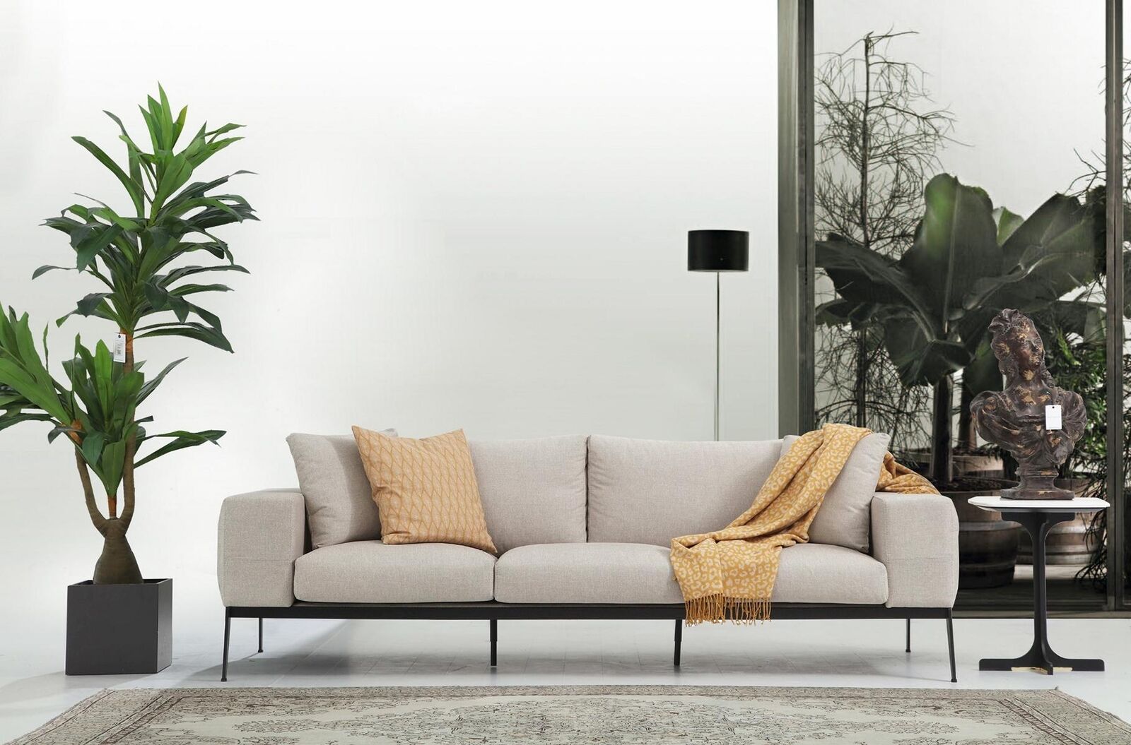 Dräisiichter Canapé 3 Plazen Canapéen Beige Stoff Wunnzëmmer Luxus Modern Nei