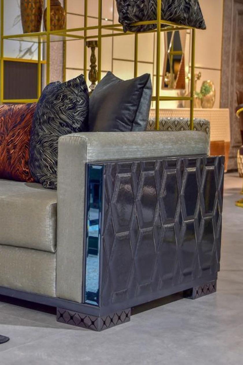 Dräisëtzer Luxus Sofa 3 Sëtz Sofas Sëtz Design brong Metall mat Textil